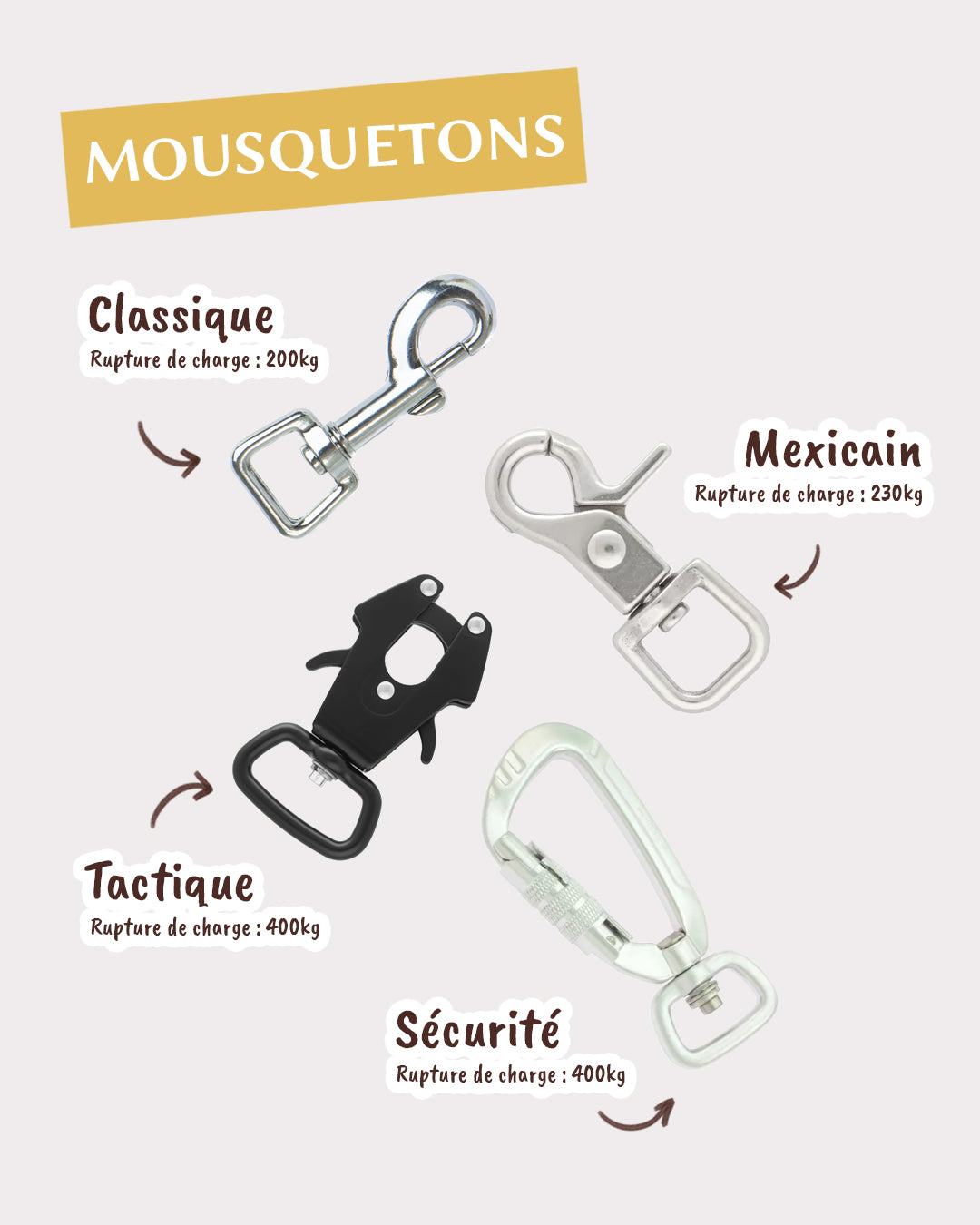 • Sans anneau : laisse classique de 1m50 ou 1m80